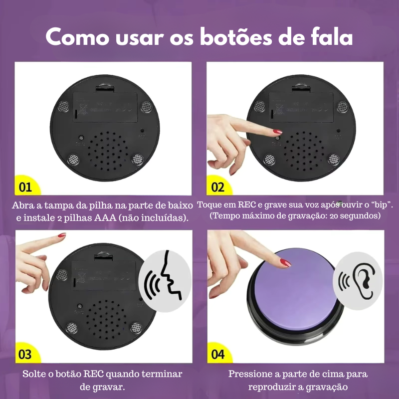 Fale o comando (“passear”, “água”, “sim”, “mãe”).